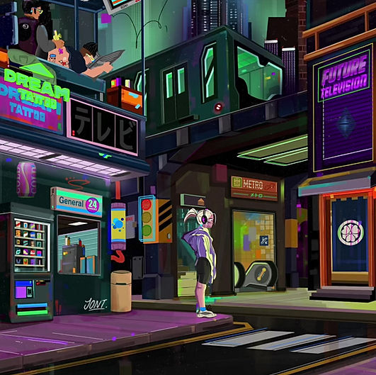 "Life in Miniature" focuses on the small details of everyday life. The scene is set as an unofficial continuation from "Fly-Thru Ramen" as the two characters in the flying convertible returns home after getting their take-away ramen. Along with the story of returning home, I wanted to draw attention to the finer details like how shadow works under the evening glow and how it interacts with the surroundings. All frames fully illustrated and sound design by me.